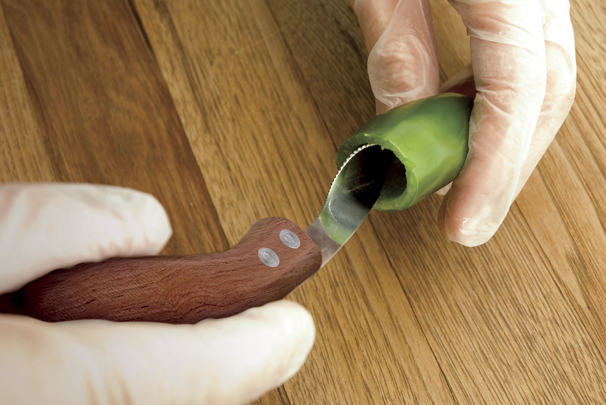 Udskærer til at rense chili. Aldrig har det været lettere. Med skær til at tage toppen af og spiral blad for at rense den indvendigt.