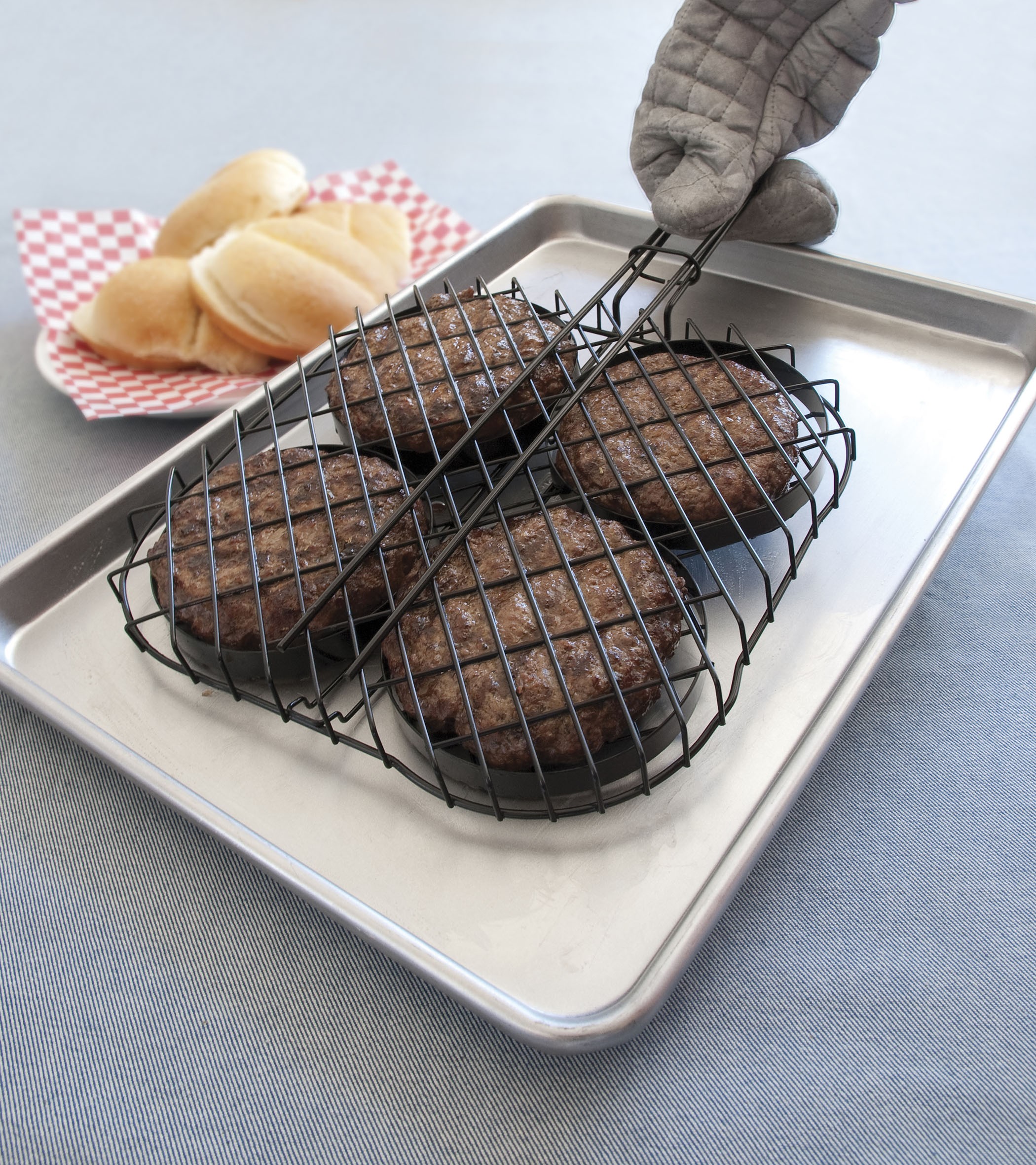 Præsenter dine burgers med stil med denne smarte burgerholder til grill. Holderen giver et stabilt greb om dine burgere, så de holder sig på plads, mens du griller dem perfekt. Perfekt til grillfester og enkel servering.
