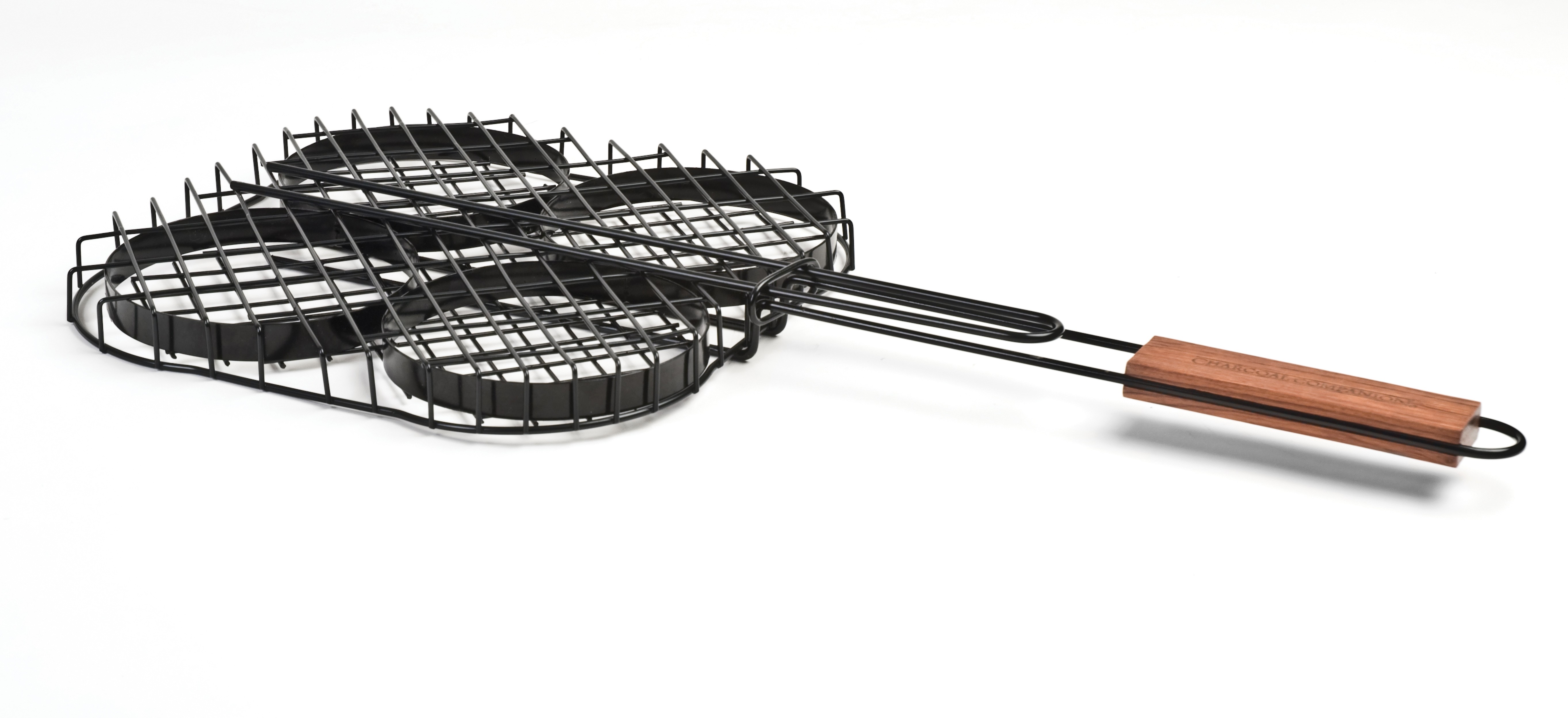 Lækker grillkurv til at grille fire burgerbøffer på en gang. Så har du styr på dine bøffer mens de grilles.