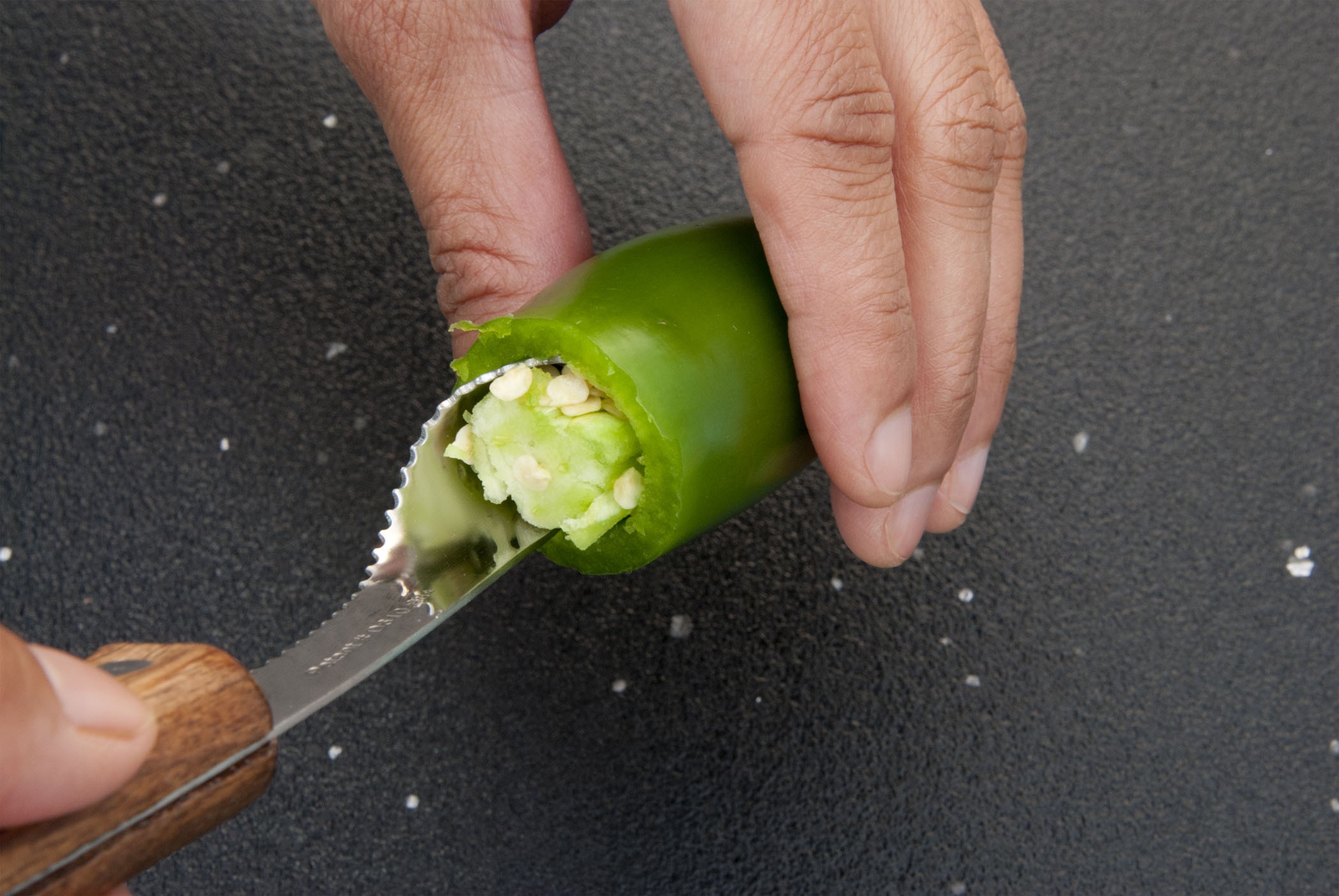 Udskærer til at rense chili. Aldrig har det været lettere. Med skær til at tage toppen af og spiral blad for at rense den indvendigt.